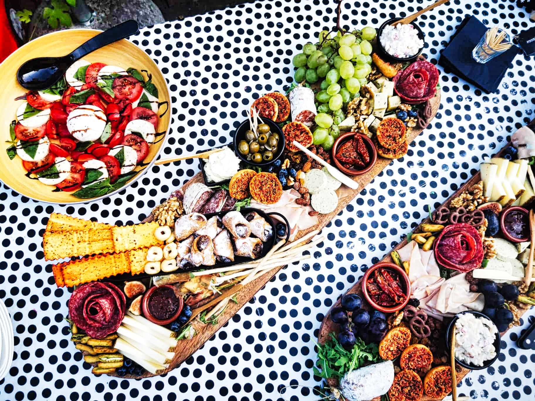 Voor een picknick borrel van werk via Food and Wood een paar heerlijke planken laten bezorgen. En ook voor buiten opmaken van de planken draaien ze hun hand niet om :-)